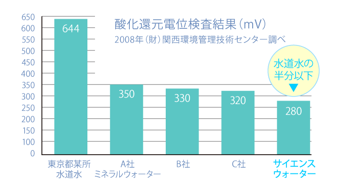 市販のミネラルウォーターより数値がすぐれていることが実証されました。