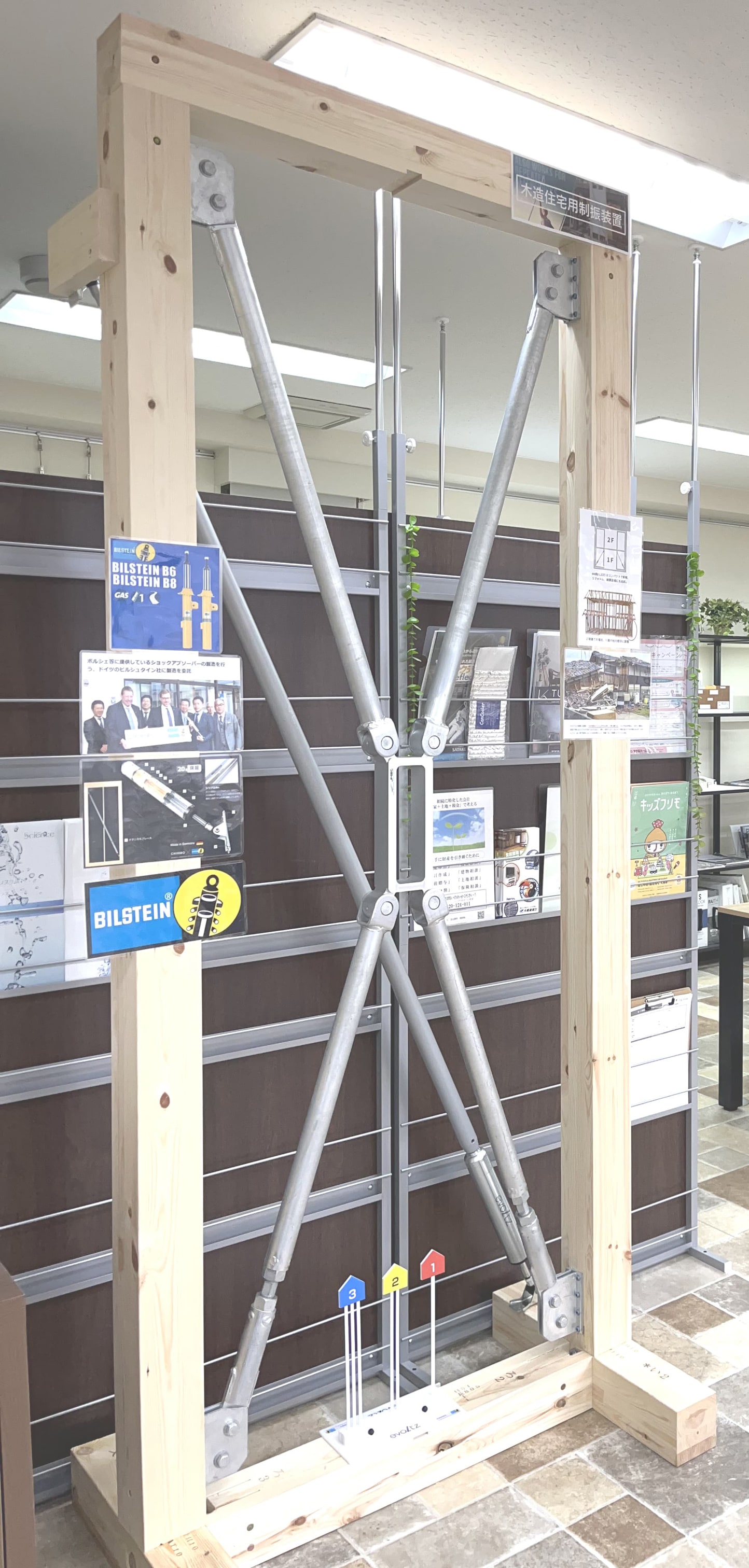 ショールームの一角に制震装置を設置しました。