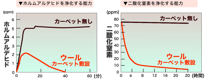 ウールは空気中の有害物質をはじめ、臭い等を清浄化する能力があります。