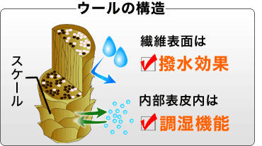 ウールは繊維が多孔質で、空気をたくさん蓄える事ができる。